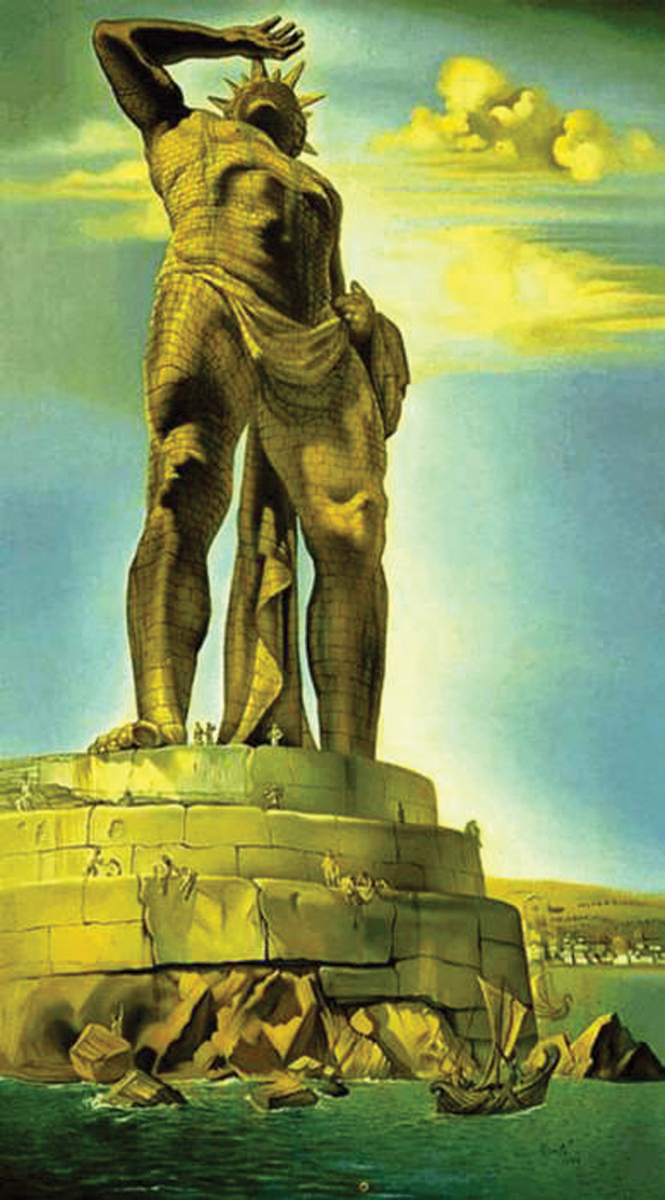 The Colossus of Rhodes, known as one of the seven wonders of the ancient world, was a towering figure that stood 30 meters above the entrance to the port city of Rhodes, a Greek island relatively close to the shore of Turkey. Many artists' renditions picture the Colossus astride the entrance of the protective harbor, but historians believe that this image is likely more fanciful than correct. If that were the case, the figure, which stood for only 56 years, would have blocked the harbor's entrance when it toppled over during an earthquake in 226 BC.