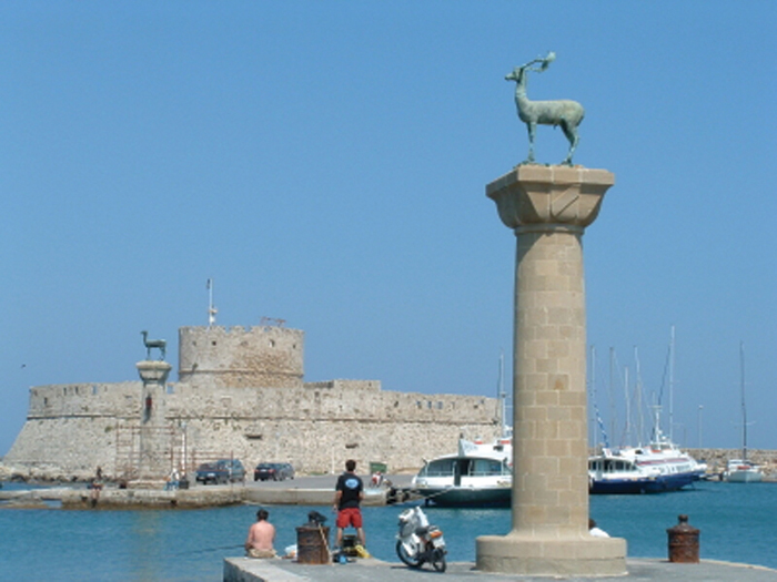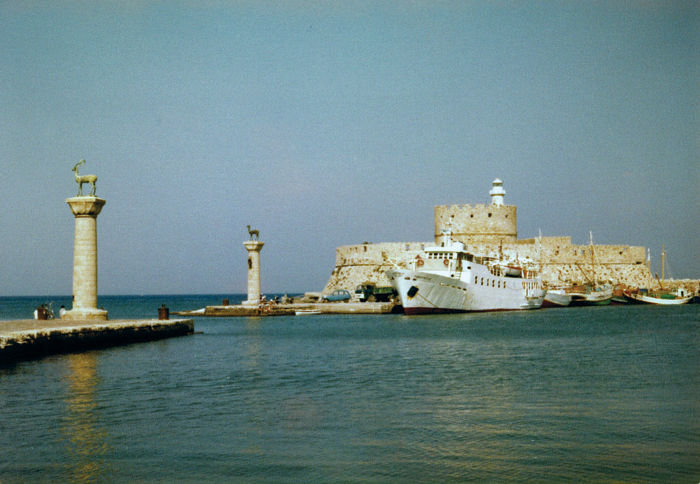 Today, much smaller figures guard the entrance to the Port of Rhodes.