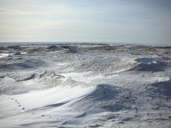 Ice covering Lake Ontario in February 2009, something that has yet to occur this winter season. As NYSG's Dave White points out, this has the St. Lawrence Border Control and others concerned about water levels into the spring and beyond. Photo by Paul C. Focazio, NYSG.