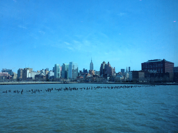 The New York City skyline, as seen from Pier 40 at Hudson River Park aboard the Hornblower Infinity, which played host to this year's 2013 Metropolitan Waterfront Alliance Conference. Photo by Paul C. Focazio, NYSG.