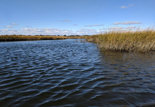 Coastal marsh, one of the types of habitats for which future conservation needs were discussed during the NYSG-LISS Coastal Habitat Priorities virtual meeting. Credit: Maria Tzortziou/CUNY