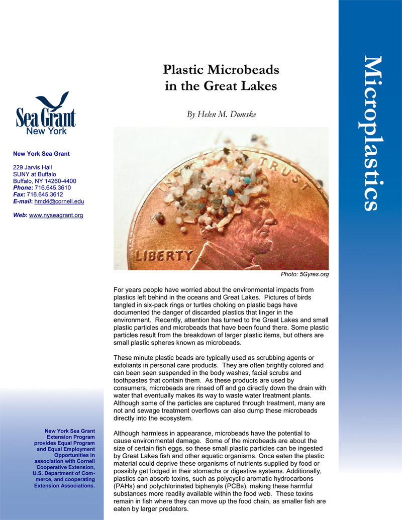 For more on NYSG's efforts to educate on the topic, see the two-page "Plastic Microbeads in the Great Lakes" fact sheet (pdf).