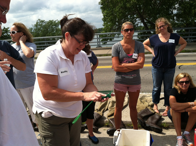 The workshops took teachers out in the field and focused on interactions with scientists and environmental specialists from the U.S. Environmental Protection Agency, NYS Department of Environmental Conservation, U.S. Geological Survey (see photo above), Buffalo-Niagara Riverkeeper, Cornell University, Buffalo State College and many other partners.  The teachers plunged into learning by monitor fish populations with seine nets (see first two photo below), ageing fish using otoliths (ear bones) (see third photo below), collecting and identifying plankton and taking water samples.  Many of the teachers have passed these new skills on to their students during meaningful watershed environmental education experiences that are funded through the GLRI project.