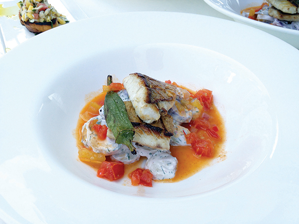 Chef Steve Amaral's olive oil poached bluefish and Scallop ceviche.