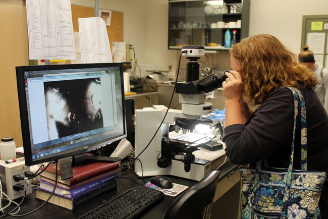 Above, an examination of fish ears, called otoliths, helps determine the age of the fish. Photo: Kara Lynn Dunn
