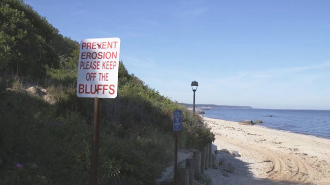 When people walk on bluffs, they risk trampling plants and/or loosening sand in the face. Credit: Cornell Extension Marine Program