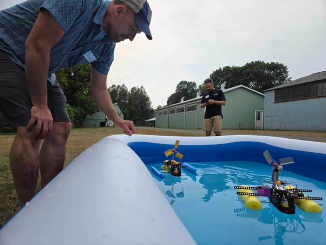 During the two day workshops held in early August at the Cornell Biological Field Station on Oneida Lake, participants learned about innovative research, inspired by the Hawaiian apple snail, that has led to a robot prototype designed to collect microplastics from the water’s surface. Credit: Nate Drag/NYSG