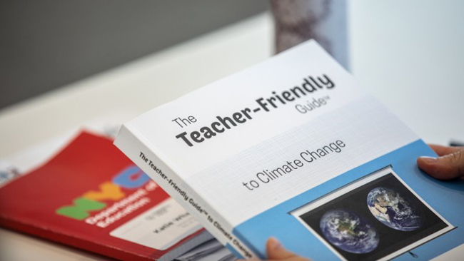 The book “The Teacher-Friendly Guide to Climate Change,” has reached 50,000 educators, including every public high school science teacher in New York City and two-thirds of all science teachers in New York state. Credit: Jason Koski/University Photography.