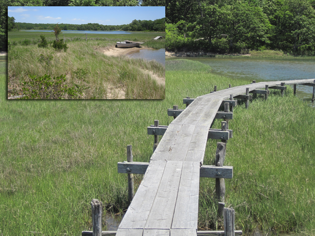 The Spartina alterniflora is noticeably shorter at the Mashomack Preserve on Shelter Island, NY. This site is one of the most remote and has some of the lowest nitrogen concentrations on Long Island. Spartina at this site tends to be shorter and have very dense roots.