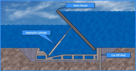 The gates could be closed when needed to hold floodwater from entering the bay.