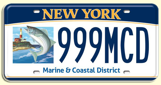 Environmental and fishing grant programs are funded collectively with $25 from the annual fee from each Marine and Coastal District license plate. Credit: New York Department of Motor Vehicles