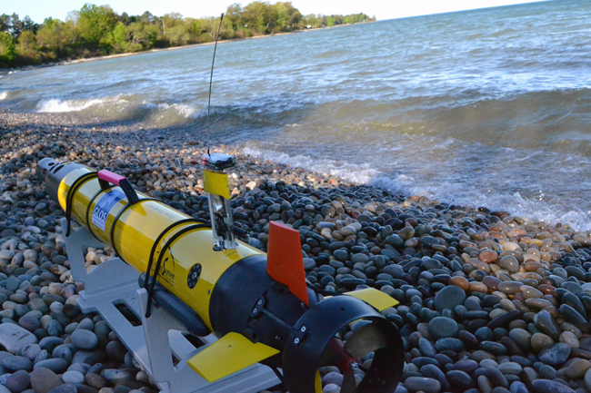 “The autonomous underwater vehicles represent the next wave in environmental sampling of our Great Lakes. No longer do we need to put two people in a boat and send them out for a day putting instruments in and out of the water. We can program these AUVs to leave from shore, go out, travel up and down in the water column, collecting thousands of data points, and then return home,” said research leader Dr. Gregory L. Boyer, chair of the SUNY ESF Department of Chemistry and director of Great Lakes Research Consortium.