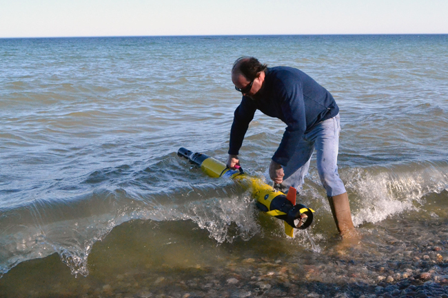 The high-tech, remote-controlled, 6-foot-long equipment gets data for analysis of nearshore-offshore interactions, fish productivity in Lake Ontario, changes to the lower food web, and algal abundance. The research will also focus on how the thermal bar, a seasonal/spring temperature barrier, impacts nutrients in the water.
