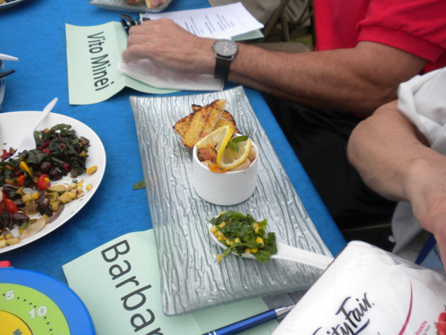 Squid in the maize? This unlikely thought managed to conjure up some culinary magic by two competing chefs at New York Sea Grant’s second annual Chef Seafood Throwdown on August 9 at Grown on Long Island Day at the Suffolk County Farm and Education Center, a day to showcase locally grown produce, fresh caught seafood and artisanal foods and products.