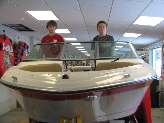 Jacob (left) and Adam Cooper, seen here at Cooper's Marina in Baldwinsville, earned their Young Boater Safety Certificates at the 2010 Central New York Boat Show. The training program was offered again this year in February by the US Coast Guard Auxiliary and New York Sea Grant at the Central New York Boat Show at the NYS Fairgrounds in Syracuse, NY. Successful completion of the free 8-hour two-part course and proctored exam is required for youth to legally operate a motorized boat or watercraft alone on New York State waters. Photo courtesy of Cooper's Marina.