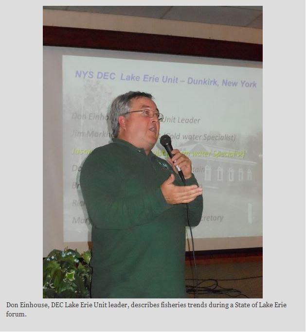 Don Einhouse, state Department of Environmental Conservation’s Lake Erie Unit leader, focused on study results of catches, catch rates and angler efforts charted during the last 25 years.