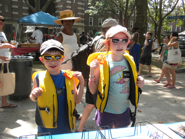 These youngsters tried child-size life saving vests at the New York Sea Grant Discover Clean and Safe Boating traveling exhibit at the City of Water Day in New York City. The 8-hour Young Boater Safety Certification training course for ages 10 to 17 will be offered on Saturday, February 20, 2016, at the CNY Boat Show in Syracuse, NY. Photo: NYSG/Paul Focazio