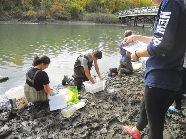 Student stewards collect and analyze water samples along Sunken Meadow Creek at Sunken Meadow State Park in Kings Park, NY, a designated LIS Stewardship Area. Photo by Amy Mandelbaum, NYSG/LISS.