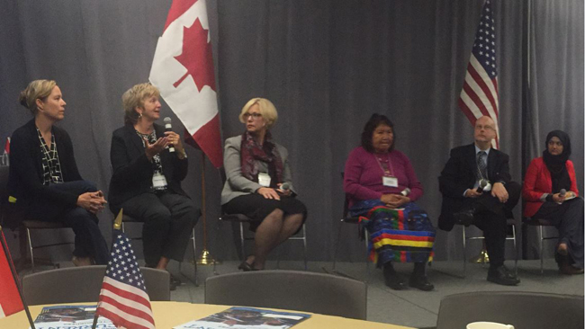 In early October 2016, NYSG's Helen Domske spoke at an international "Celebrating the Great Lakes" panel at the Great Lakes Public Forum sponsored by U.S. Environmental Protection Agency and Environment and Climate Change. She is pictured second from the left alongside (l-r) Sandy Smith, Nichols School Buffalo; Kathryn Buckner, President, Council of Great Lakes Industries; Josephine Mandamin, First Nations; Robert Sawyer, Science Fiction Writer; Rabia Ahmed, Coordinator, Eid Festival 2016, Hamilton, Ontario. This session provided an opportunity to explore diverse perspectives on why the Great Lakes matter to our culture, environment and economy.