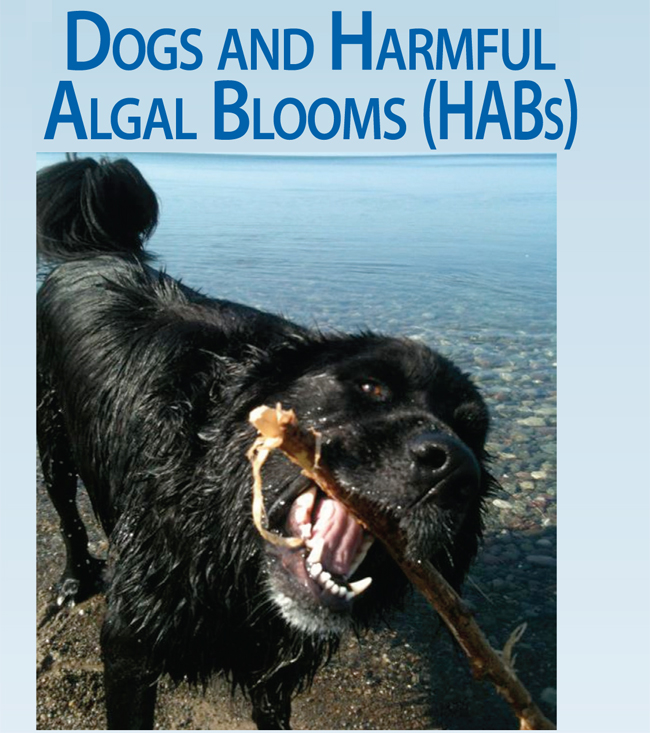 The Dogs and Harmful Algal Blooms fact sheet (pdf) and brochure (pdf) answer these critical questions: What are HABs? When are HABs most likely to occur? What do HABs look like? How do you know if HAB toxins are present? What are signs of possible cyanobacterial poisoning in dogs? How can you reduce the risk to dogs from cyanobacterial toxins? How can I report a possible HAB in New York State? How can I reach a 24-Hour Pet Poison Hotline.