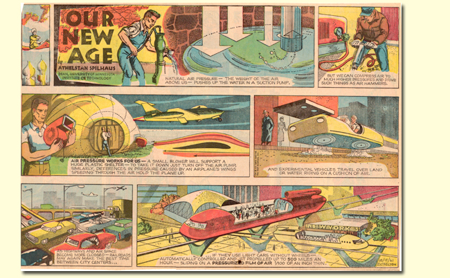 Athelstan Spilhaus wrote “Our New Age” from its inception in 1957 until 1973, although the comic strip went through three different illustrators: first Earl Cros, then E.C. Felton, then Gene Fawcette. “Our New Age” had an enormous audience almost immediately. A 1959 article in Time magazine noted that the strip appeared in 102 U.S. and 19 foreign newspapers.